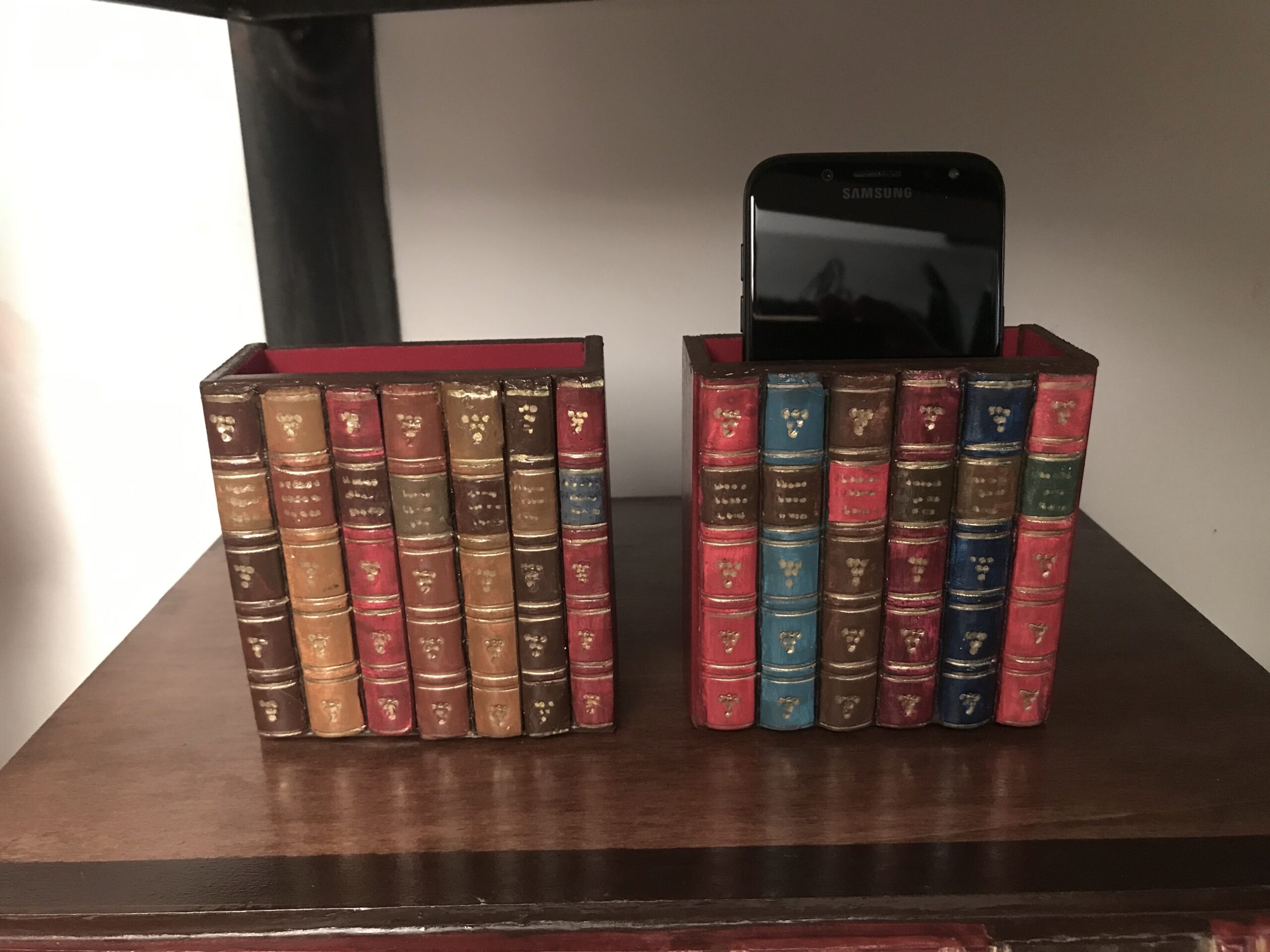 Porta cellulare fatto in legno e gesso duro