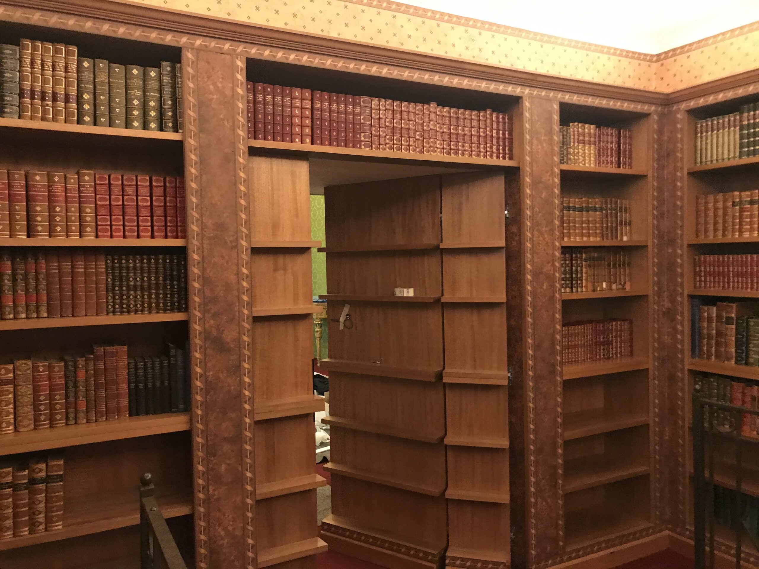 In un palazzo storico di Genova sito in Via Garibaldi 5, tra le tante meraviglie ,esiste una libreria bellissima con una porta segreta di cui mi sono occupata. Inutile dire che dietro si cela una meravigliosa camera da notte!!! La porta si apre schiacciando un piccolo pulsante nascosto nell'etichetta di un libro. La porta risulta perfettamente mimetizzata anche grazie allo squisito lavoro di artigianato nel costruire la boiserie.