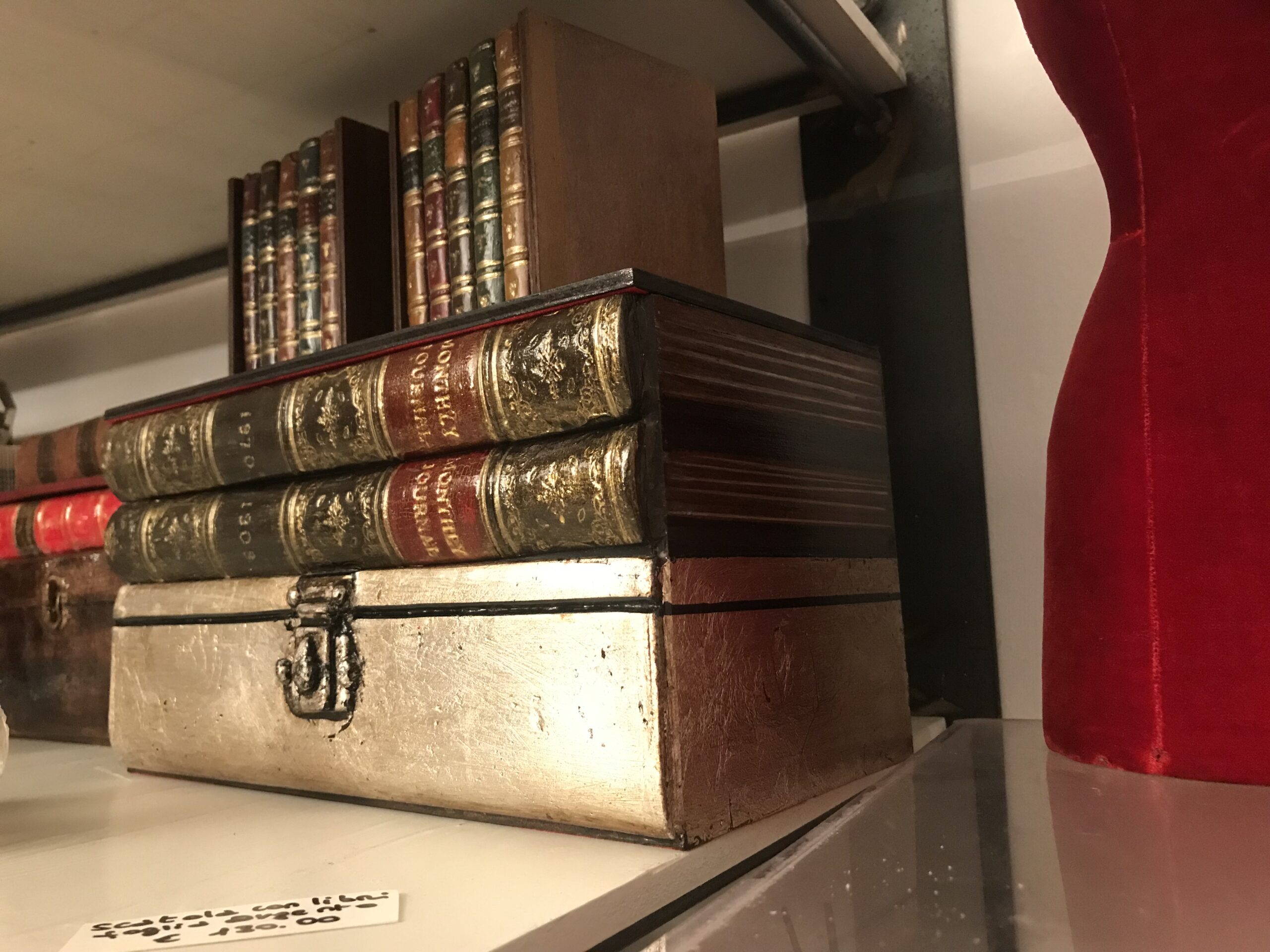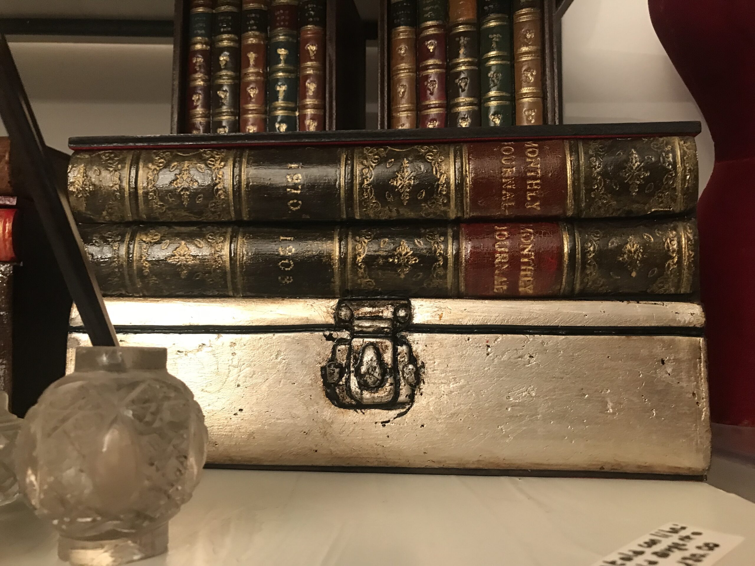 Scatola meccata con foglia d’argento e due libri,con laterali dipinti